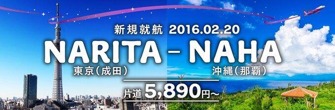 東京(成田)-大阪(関西)、 札幌(新千歳)、福岡に加え、2016年2月20日に4路線目の東京(成田)-沖縄(那覇)に就航します!
