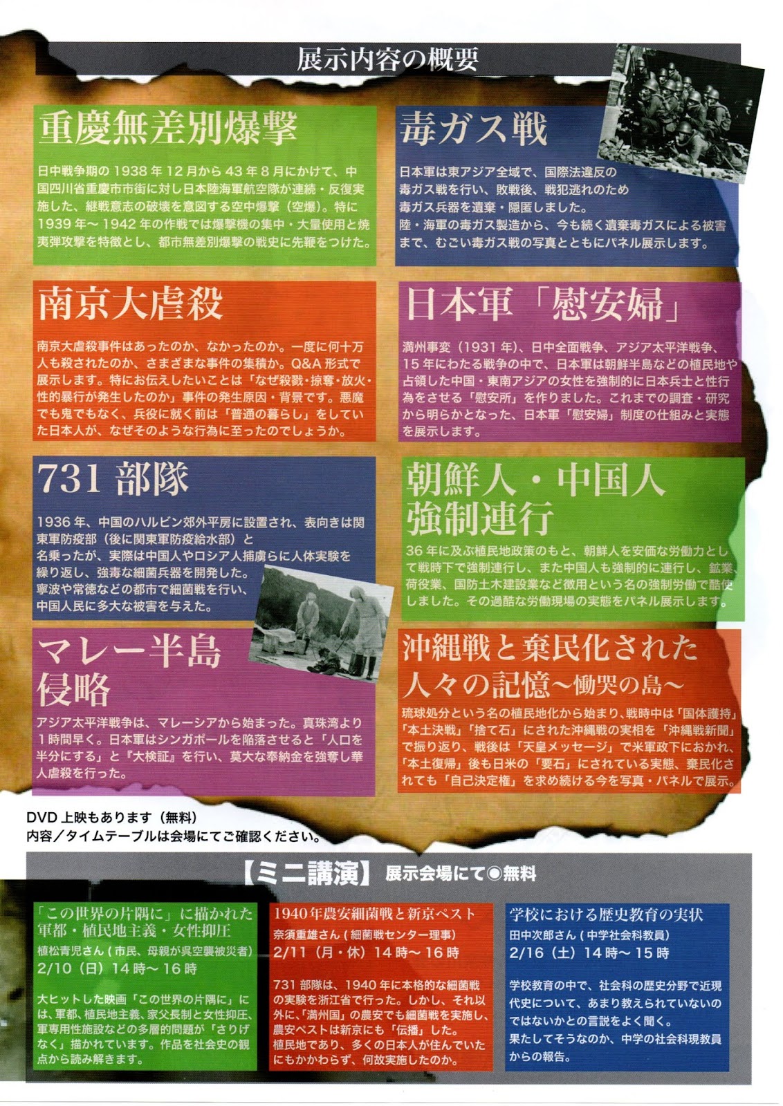 横浜の「戦争の加害展(2月10日~16日)」が無事終了しました。