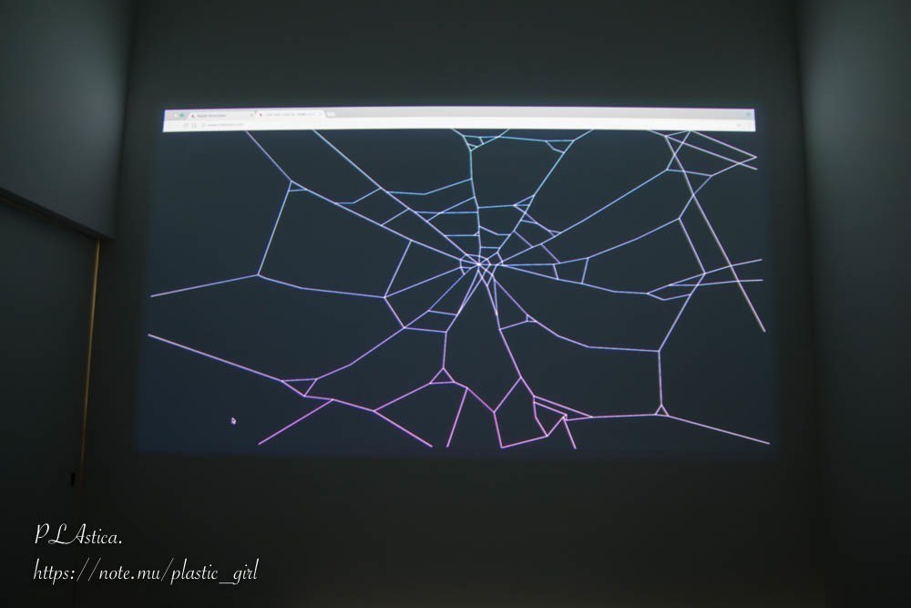 自分が操作することによって、目の前の大きなスクリーンの映像が予想外の(時には予想通りの)動きをしていく様子は単純に面白かったし、特に解説がなくても「ここを動かしてみるとどうなるのかな?」と、見る人の直感的な操作を促すような仕組みもwebサイトならではといった感じで興味深かったです。