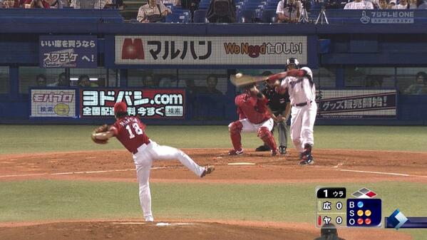 マエケン、バレンティン爆弾のカウント減らしちゃったのか!Σ( ̄◇ ̄;) これはまたカープが記録達成のお手伝いしちゃう可能性大!?(汗) #carp