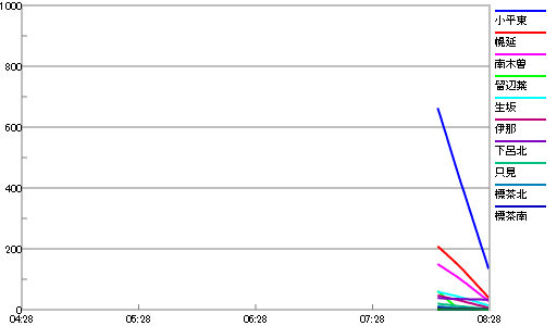 08:28 北海道 小平東 125 幌延 36 標茶北 3、岐阜県 下呂北 33、長野県 南木曽 26 生坂 13 伊那 5、福井県 織田 2、福島県 只見 1、宮城県 河北 1 #地震 pic.twitter.com/08GWjcut1A