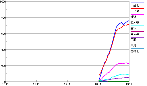 19:11 岐阜県 下呂北 756、北海道 小平東 707 幌延 227、長野県 生坂 86 伊那 49 南木曽 1、福島県 只見 3、愛知県 岡崎 2、宮城県 河北 1、熊本県 上 1、青森県 大間 1 六ヶ所 1 #地震 pic.twitter.com/tt3ZtNombZ