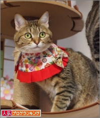 だって~、雛祭り用ケープを着てもらおうと思ったのに