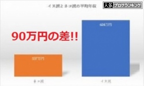 ところで、イヌ派とネコ派、平均年収はイヌ派が多いって統計