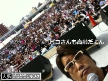 小坂大魔王(毎年出場)と大ブレイク中の"ピコ太郎"見たさに県内外から押し寄せた若者で会場は満員御礼