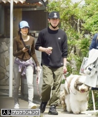 2匹の愛犬を散歩する木村拓哉と工藤静香夫婦