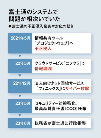 最初は21年、同社が提供する情報共有ツールの「プロジェクトウェブ」が不正侵入を受けた。22年にも同社が提供するクラウドサービス「ニフクラ」で情報漏洩が発覚した。富士通はこれらの問題を受けて、専任の最高情報セキュリティー責任者(CISO)の設置や情報管理の厳格化、全社セキュリティー点検の実施など対応を重ねてきた。にもかかわらずフェニックスへの大規模な不正侵入という3度目の失態となってしまった。総務省は、8カ月も不正侵入に気付かなかった点など富士通のガバナンスが十分に機能していなかったとして今回、厳しい対応に踏み切った。