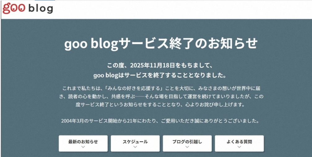 「goo blogは、2025年11月18日(火)をもちまして、