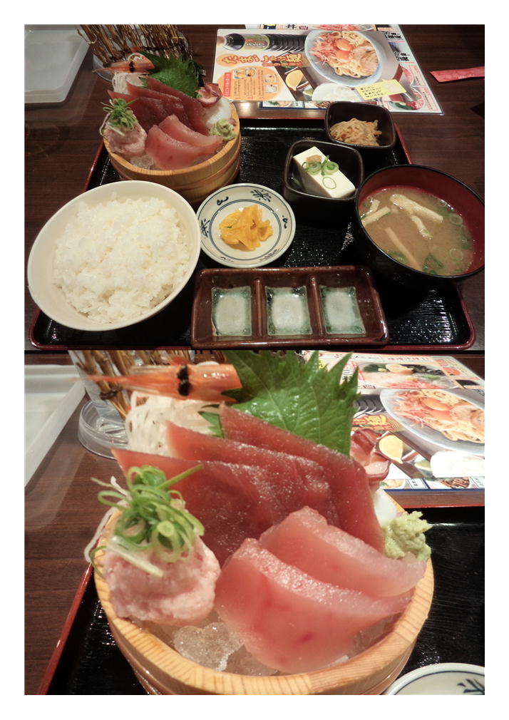 私が最初にこの店を知ったのは越谷駅前のビル。越谷の仕事は正確に言えば新(南)越谷、一駅前である。卓志が住む、幸手・久喜にもできたが1年ほど営業して、撤退してしまった。通常寿司も提供する店舗、海鮮・刺身は得意と思っていたので「刺身定食」を注文することにした。