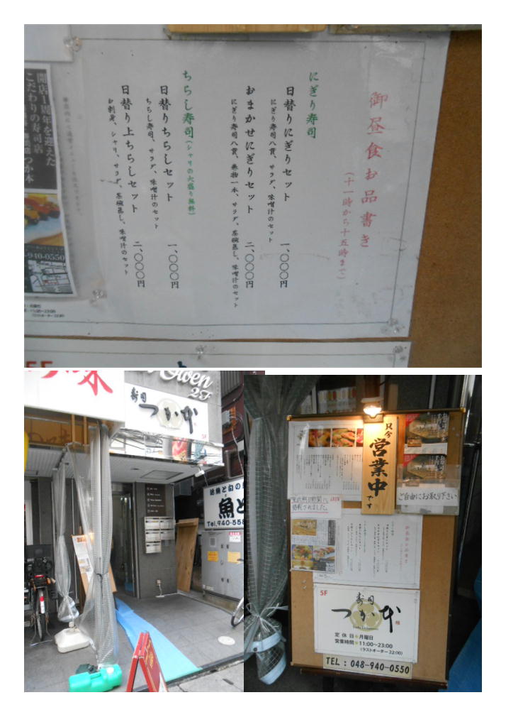 越谷での仕事にも慣れ、町を多少見る時間もとれたので路地を歩いていると新しい鮨屋を発見、どうやら小さなビルの5階に入る鮨屋「つか本」と言うらしい。写真で見る限りこぎれいな店舗。ランチも1000円(並)と2000円(上)の2種、チラシと握があるから、4種と言うことになる。