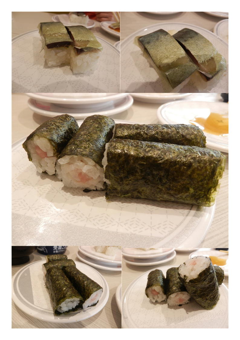 このあたりで、ラインのクーポンで実質無料となる、⑤青さの味噌汁も飲んでみた。いつもと変わらないが、味噌汁が(サービスで)飲めるのはありがたい。次は、我が夫婦が頼む⑥⑦鯖の押し寿司、これは2貫づつ食べるのがお決まりである。今日もおいしいものだった。これはどこかのセントラルキッチンで作るものだろうか、品質が一定している。