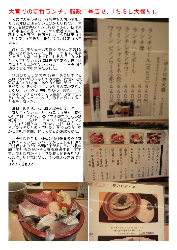 20240519 大宮での定番ランチ。鮨政二号店で、「ちらし大盛り」