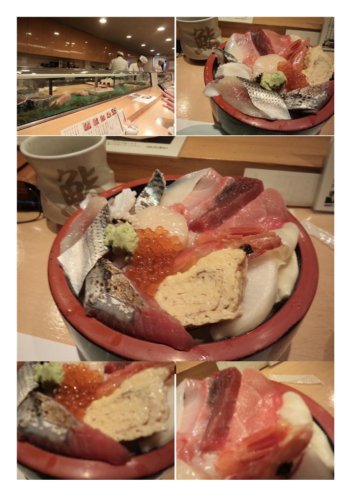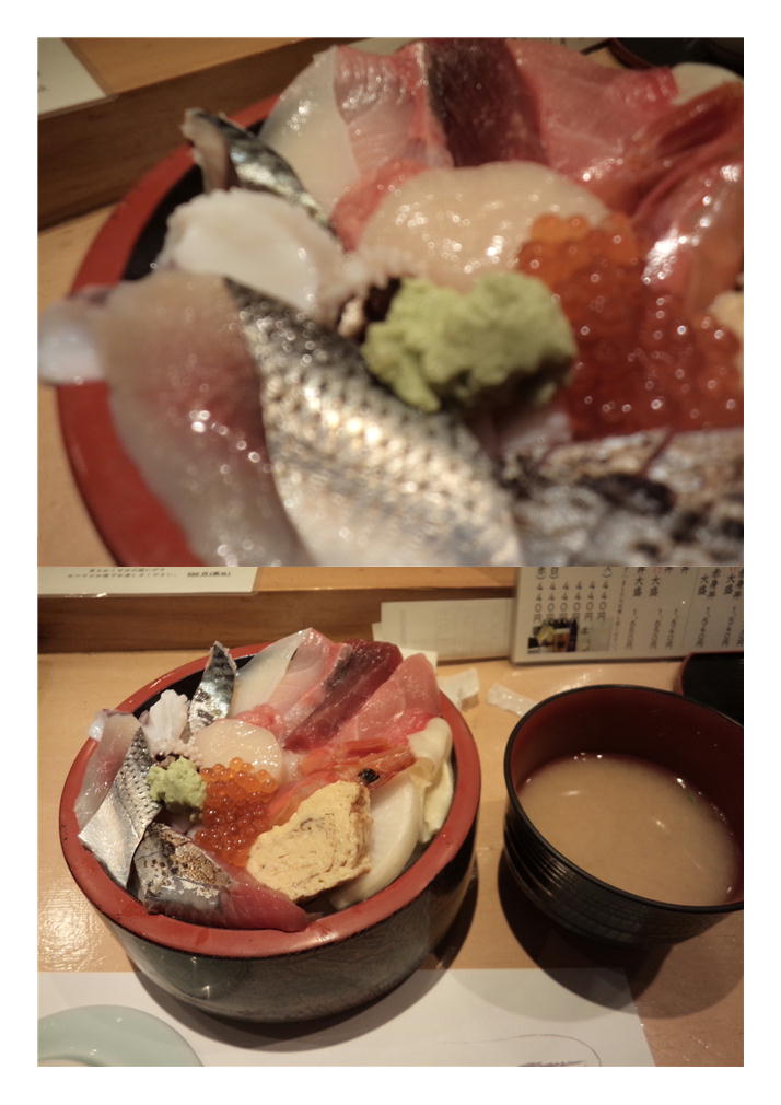 具材は数えられないほど場合によっては、重なり合っている。外から見える限り、旬の①鰯が目についた。②ハマチ③ボタン(赤海老)④シロミ魚(ビンチョウ?)⑤玉子⑥マグロ3⑦イカ2種となっていた。上部には⑧いくらがたっぷりとのっていた。食べ進めると中から⑨帆立⑩鯖、⑪げそなどが確認できた。