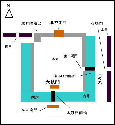 ▼戌井隅櫓台から北不明門を望む