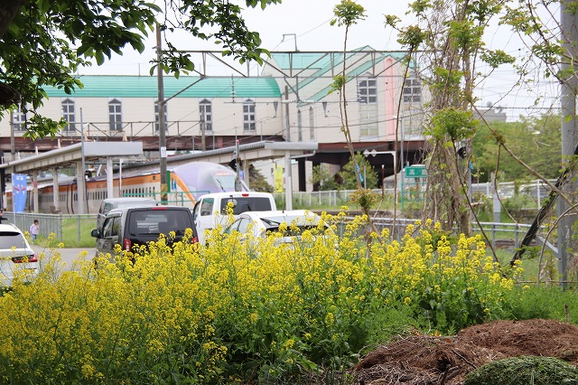 JR高畠駅の南側では、藤の花が咲き始めていました。